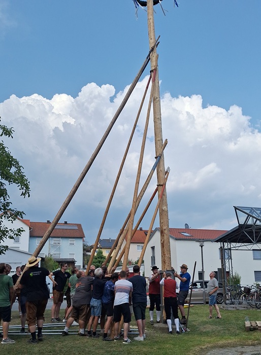 | 15.08.2025 Kirtabaumaufstellen am Dorfplatz in Kareth |